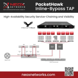 The NEOX PacketHawk Inline-Bypass Network TAP is a high-performance, scalable solution designed to ensure uninterrupted traffic flow and maximum visibility in high-speed networks up to 100Gbps with zero packet loss.